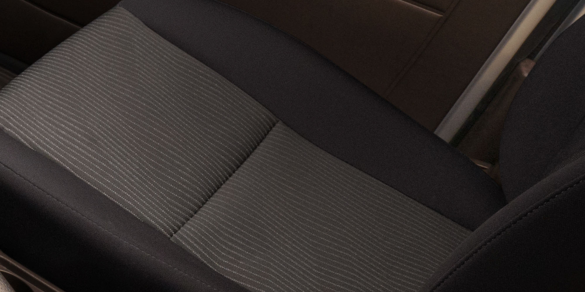 Asientos de tela color gris oscuro con cabeceras ajustables.